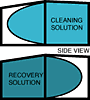 First, add cleaning solution to the front solution tank. As the solution is used, the MaxiWall moves toward the solution side - leaving additional room for recovered solution. This provides an increasing amount of space for both solution and recovery without increasing overall size of the ACS. The MaxiWall also maximizes machine balance throughout the complete cleaning cycle (see diagram below).